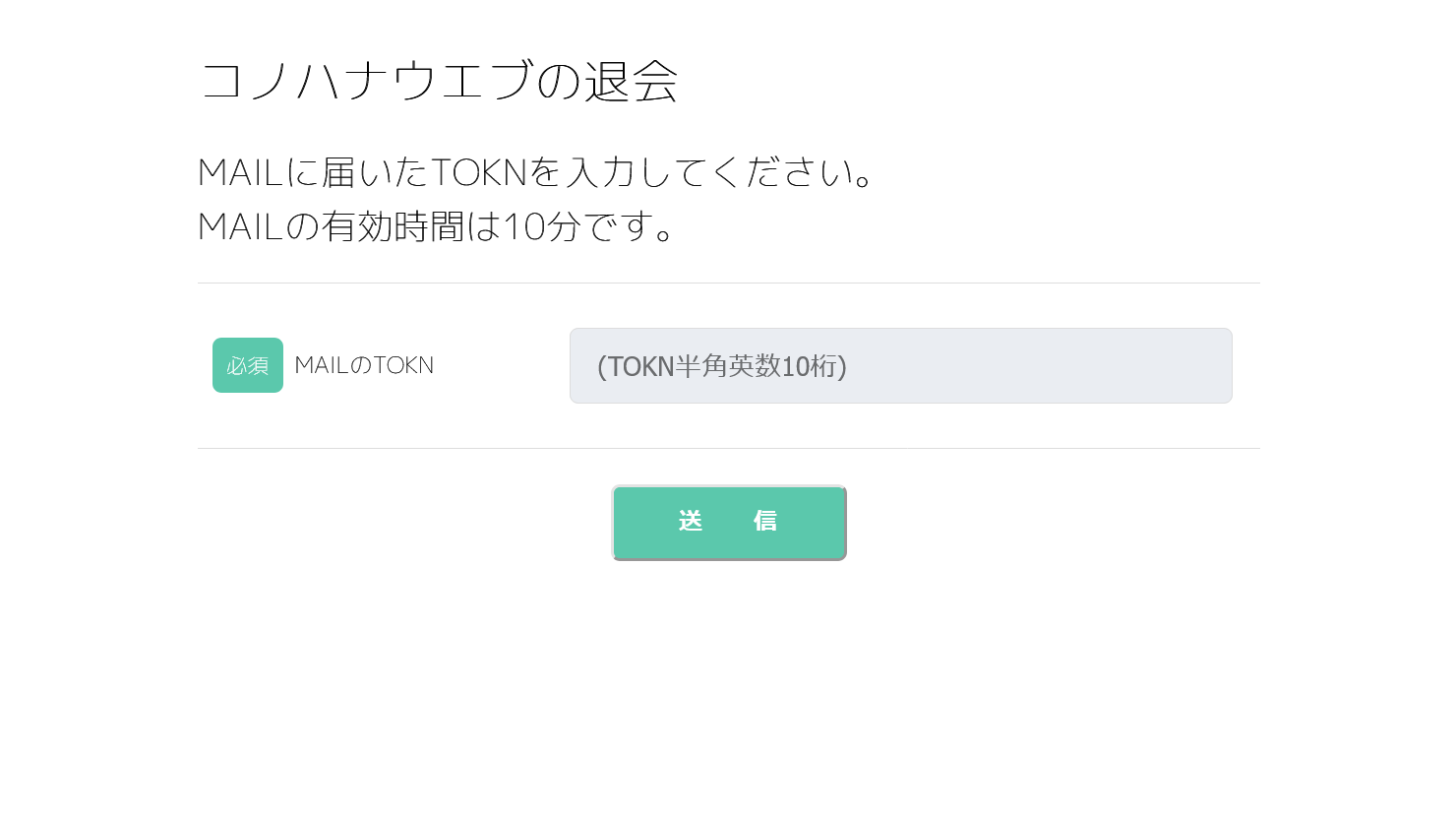 退会:TOKN入力画面