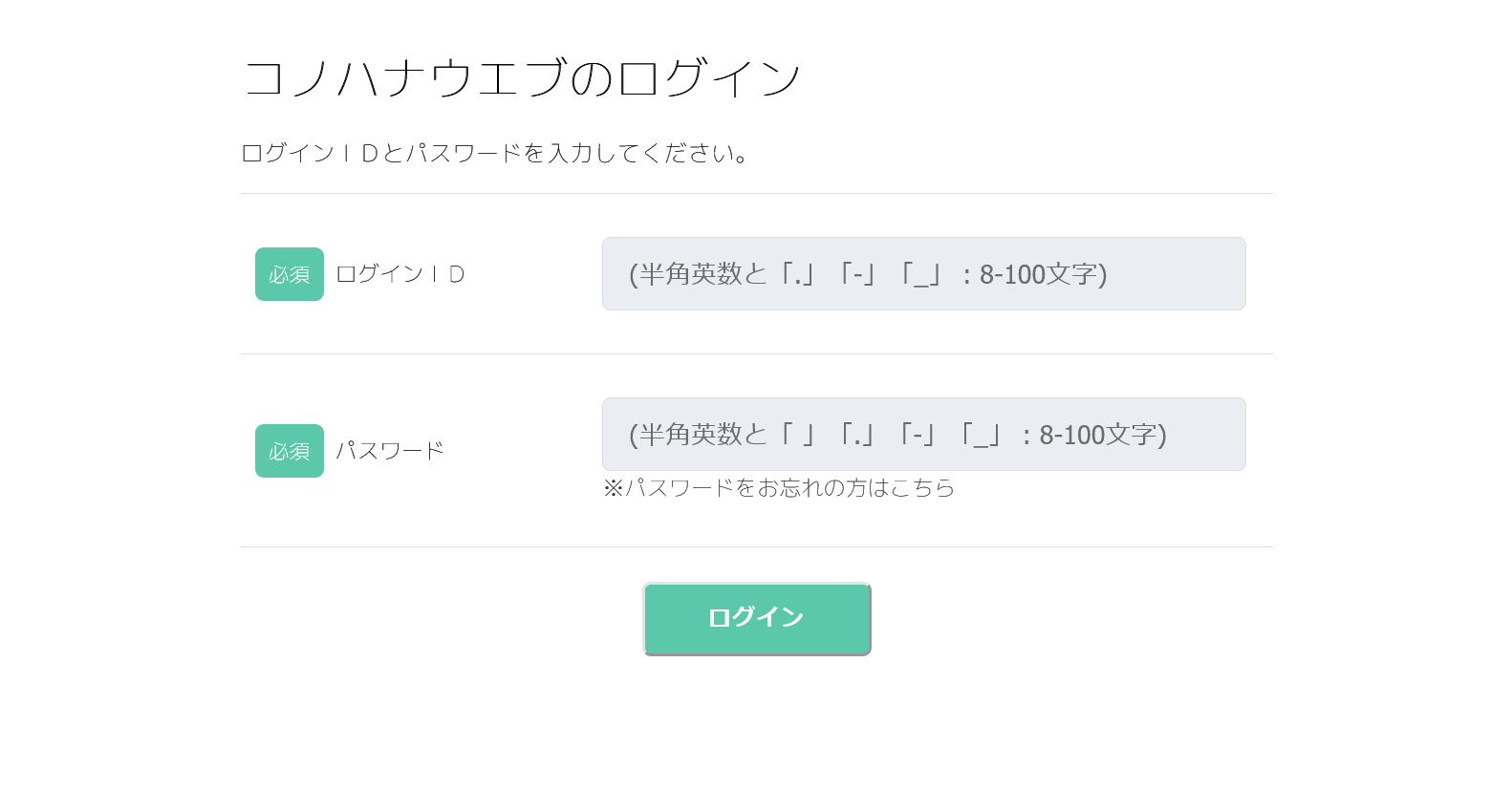 - ログインID(必須:半角英数と「.」「-」「_」:8-100文字)