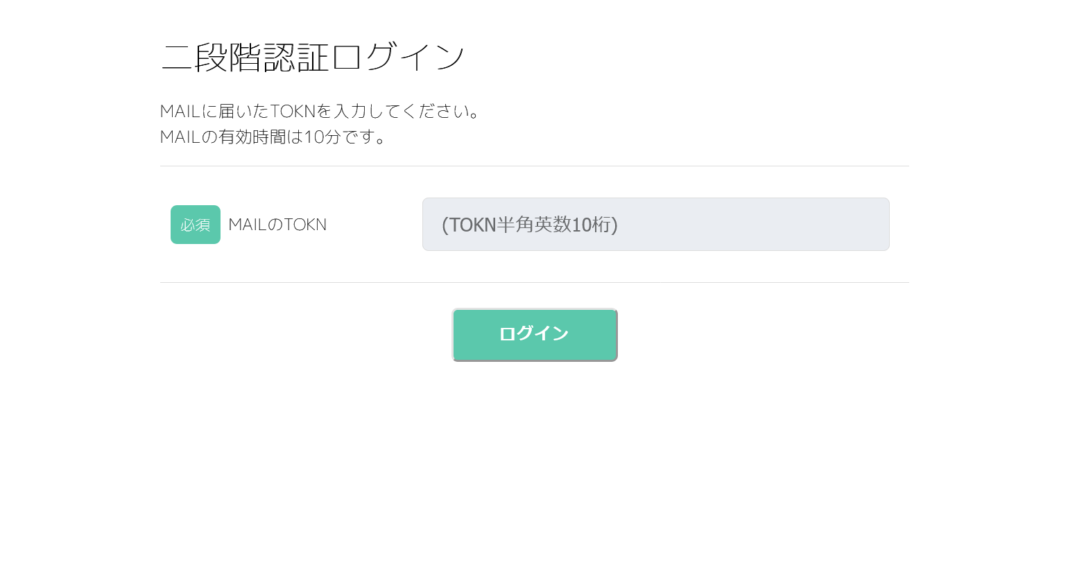 ログイン:二段階認証のTOKN入力画面