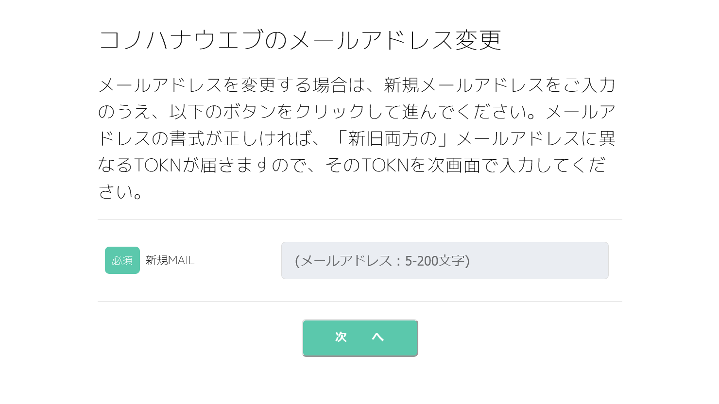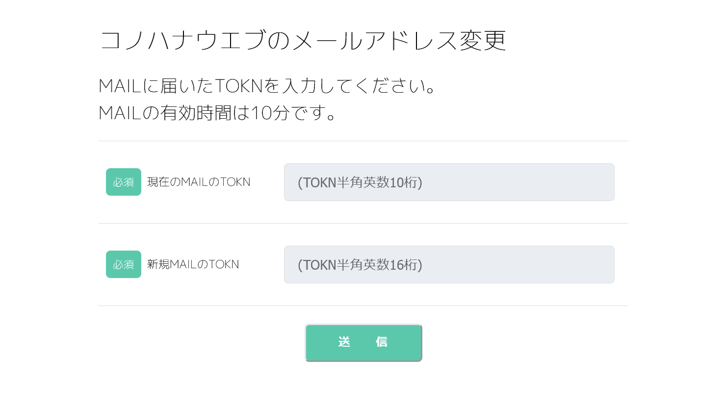 メールアドレスの変更:TOKN入力画面