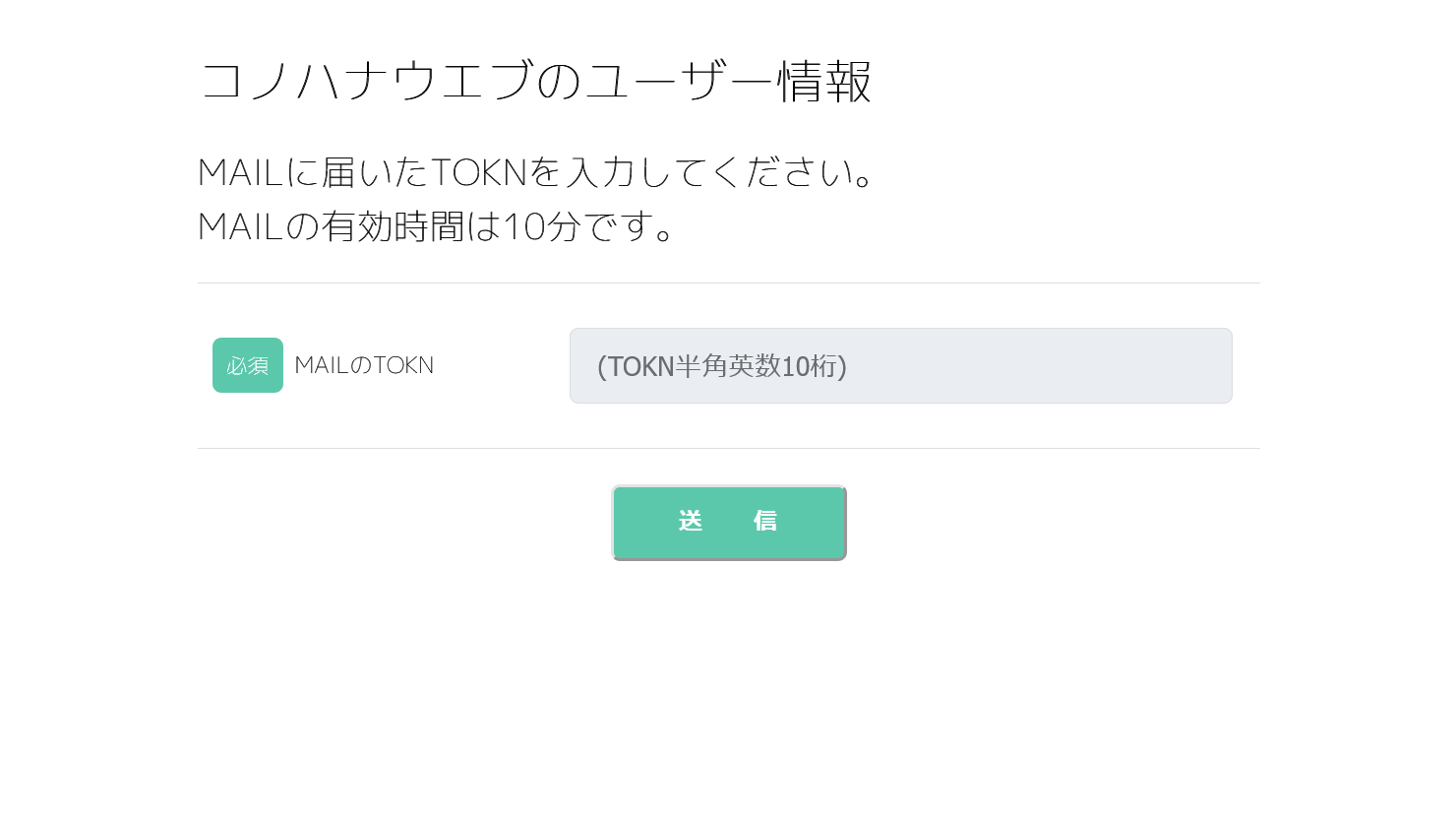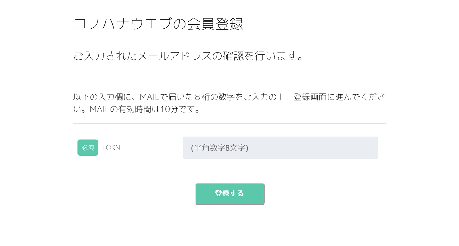 会員登録:TOKN入力画面
