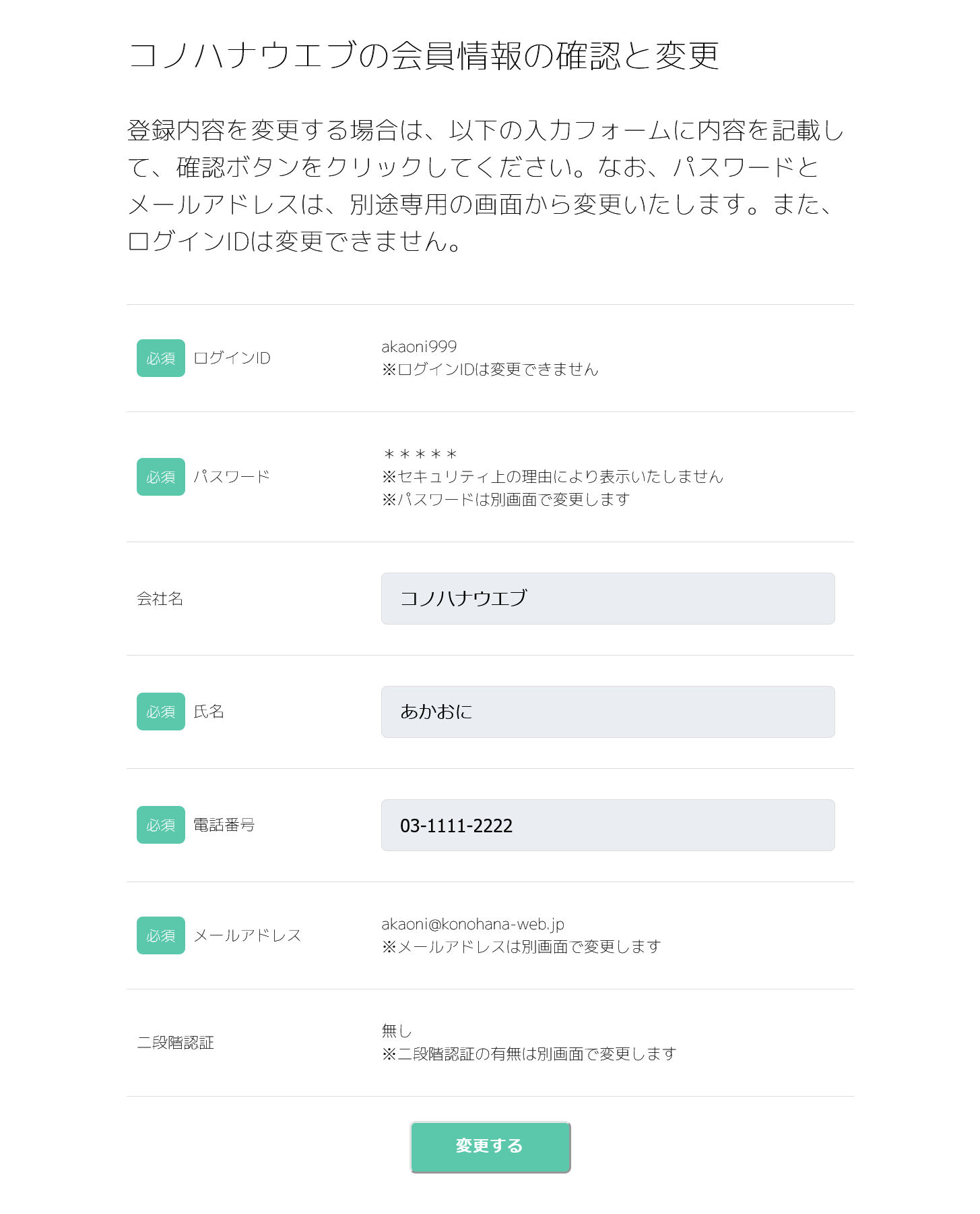- 会員の氏名や電話番号等を管理者が変更できないのは、コノハナウエブのコンセプトです。自分の情報は自分で管理します。
