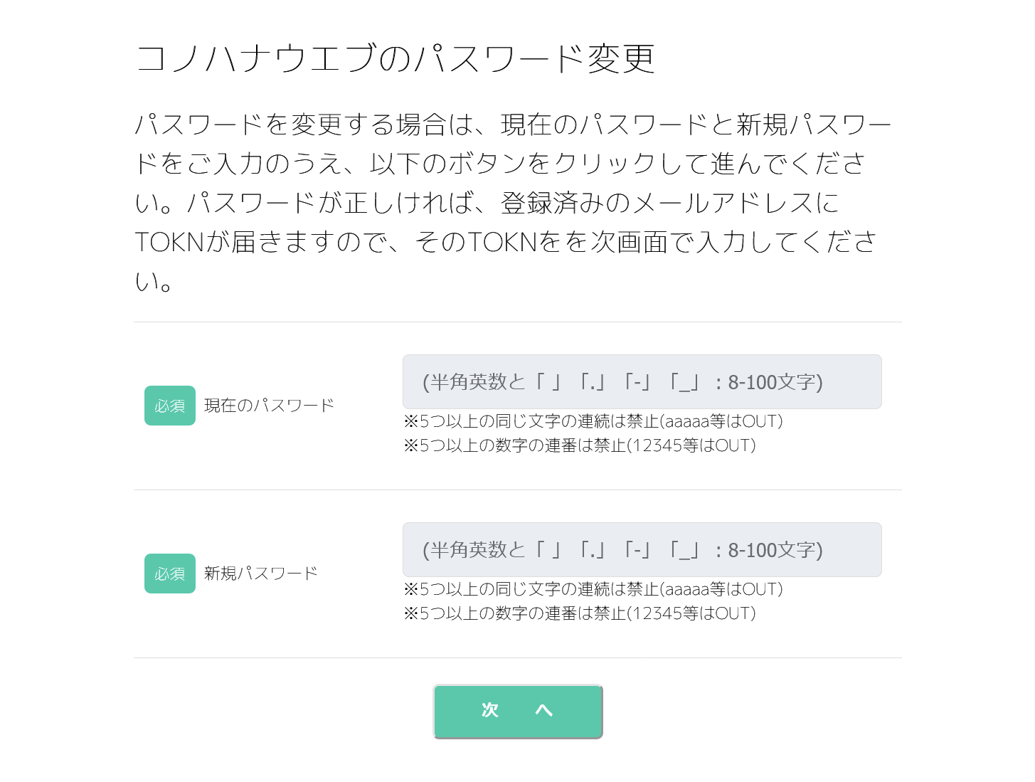 パスワードの変更:TOKN入力画面