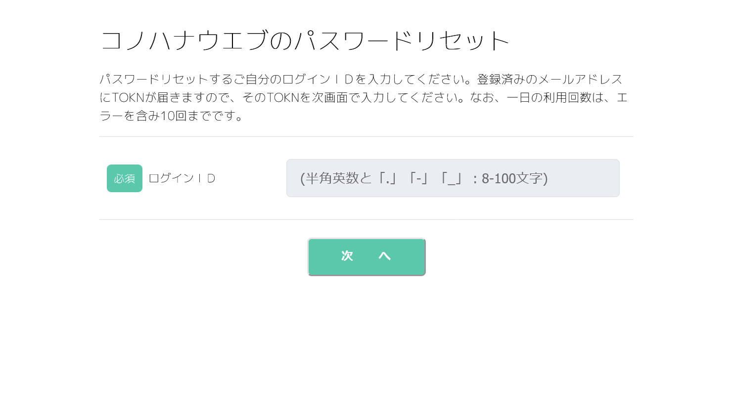 パスワードリセット:ID入力画面