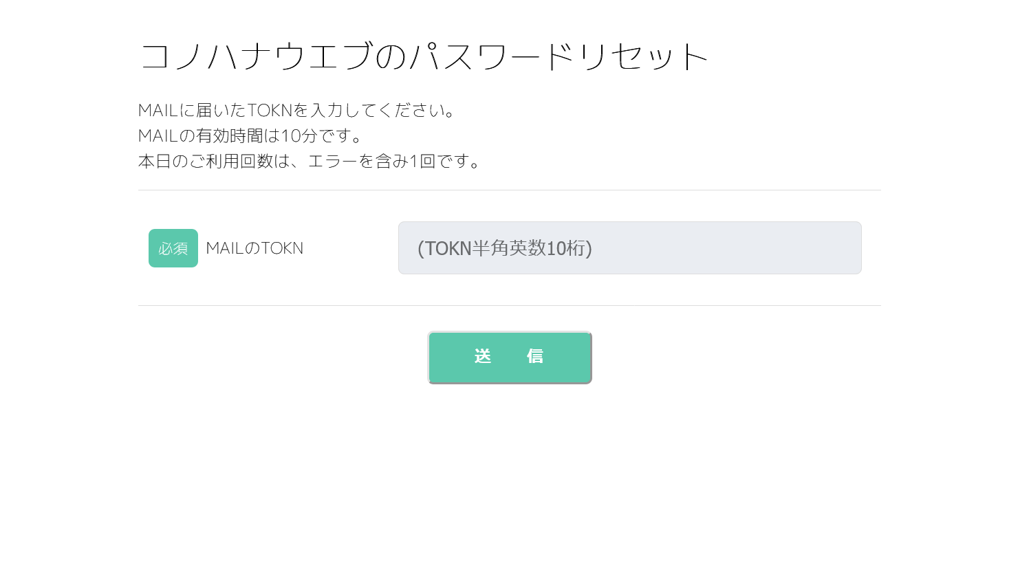 パスワードリセット:TOKN入力画面