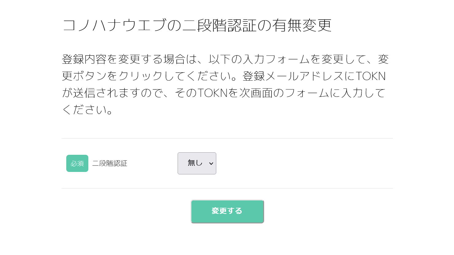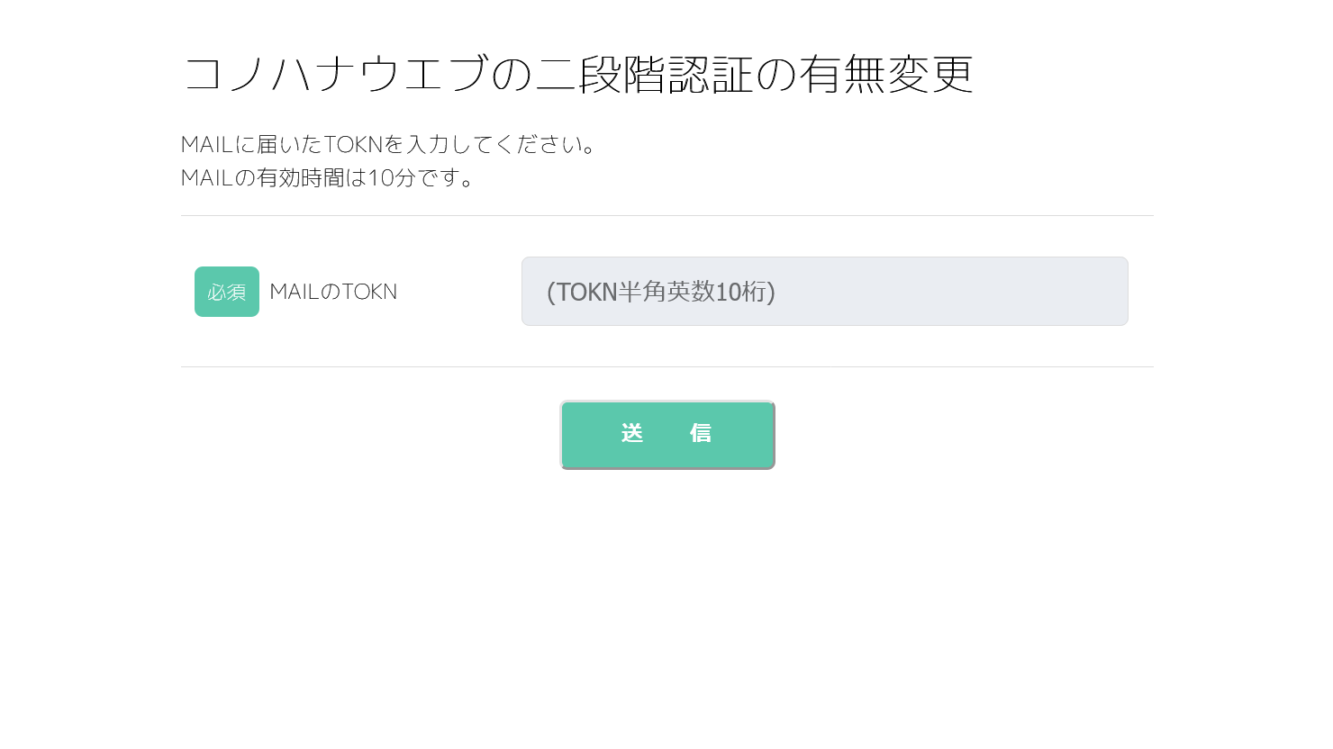 二段階認証の有無変更:TOKN入力画面